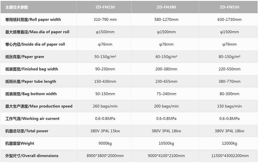 整机采用日本原装进口的伺服电控系统,确保整机能够快速稳定地运行,又能有效地减少纸袋尺寸调整的时间。生产的纸袋及成品精确度高,稳定性强,维护简便,生产高效,是各大印刷厂及生产纸袋厂家理想的选购设备。